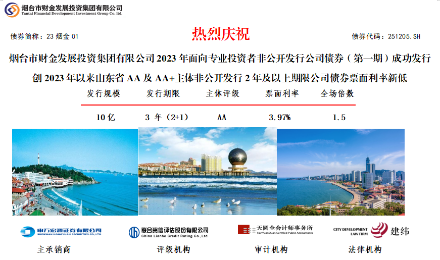 喜訊!發(fā)行利率創(chuàng)新低!煙臺(tái)財(cái)金集團(tuán)成功發(fā)行10億元非公開(kāi)公司債券